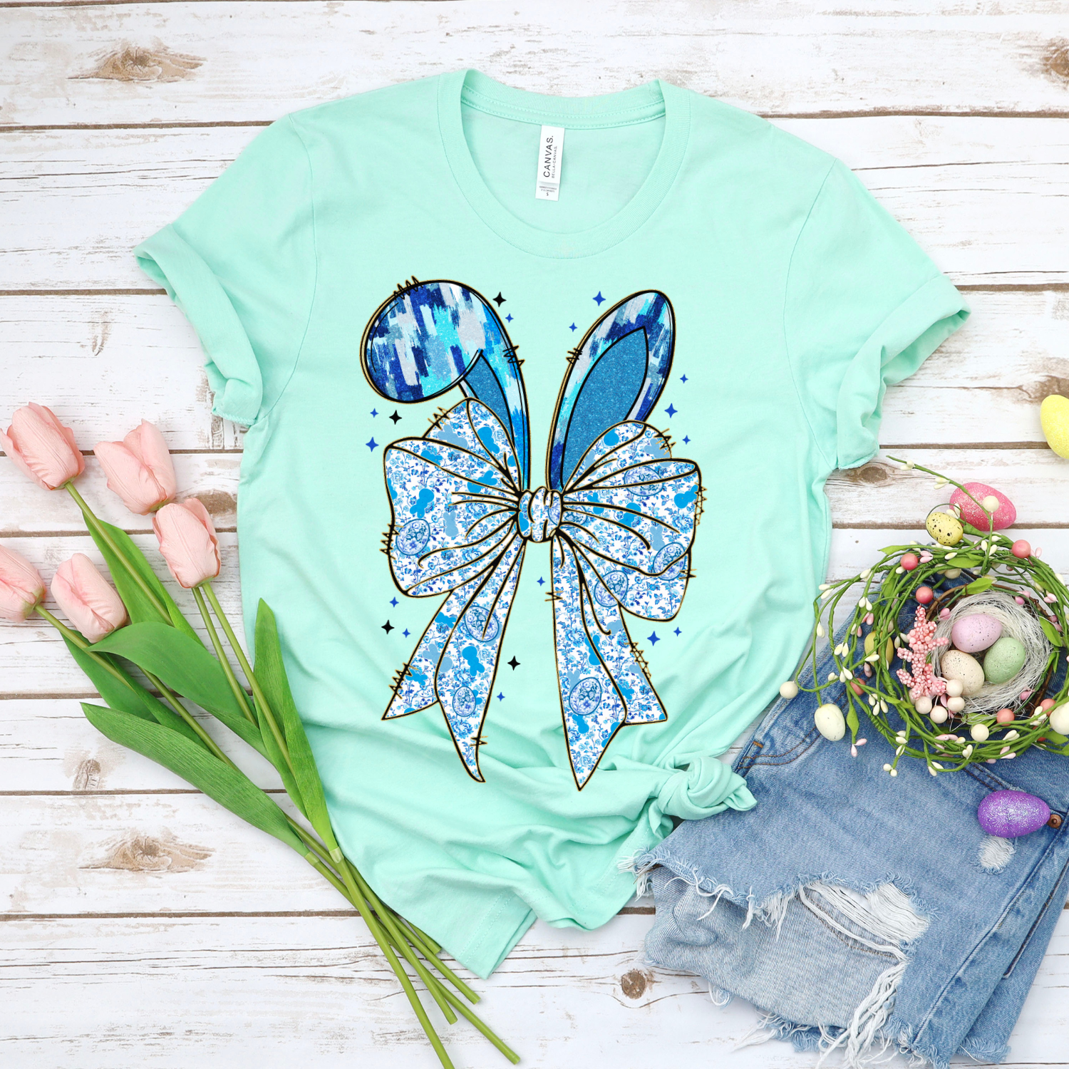 Blue Bow & Ears DTF Single Print
